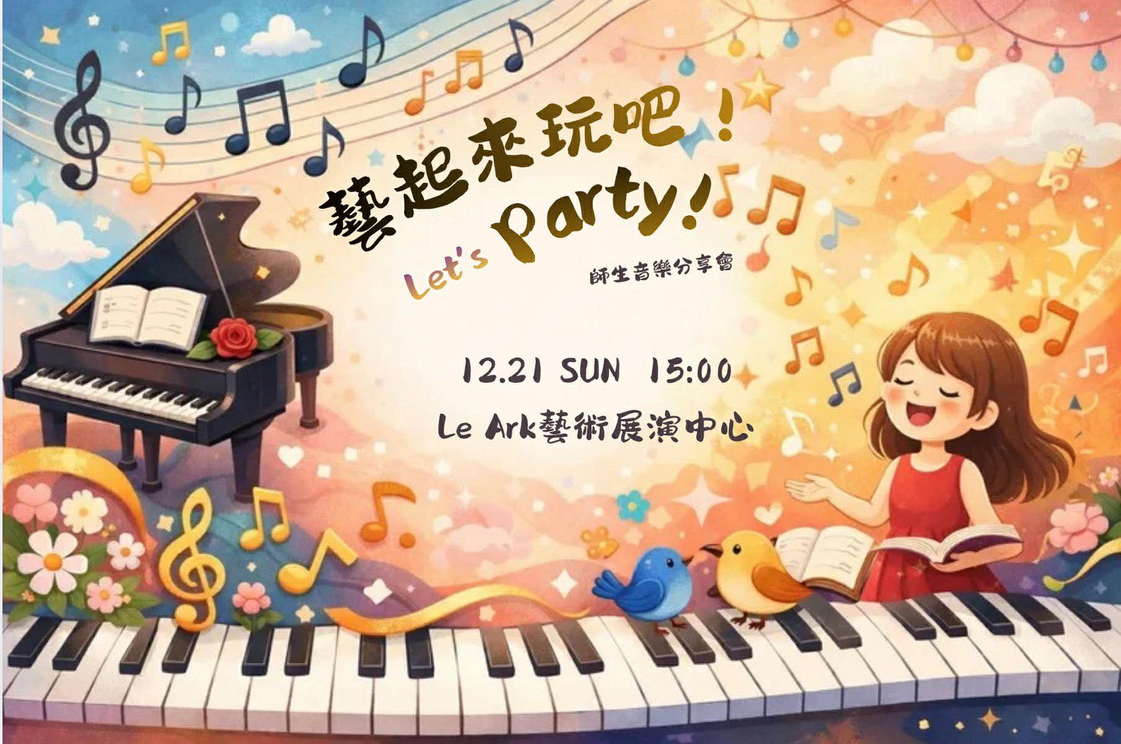 12/21,主舲老師將帶領學生們,端出一道道如精緻甜點般的音樂佳餚。